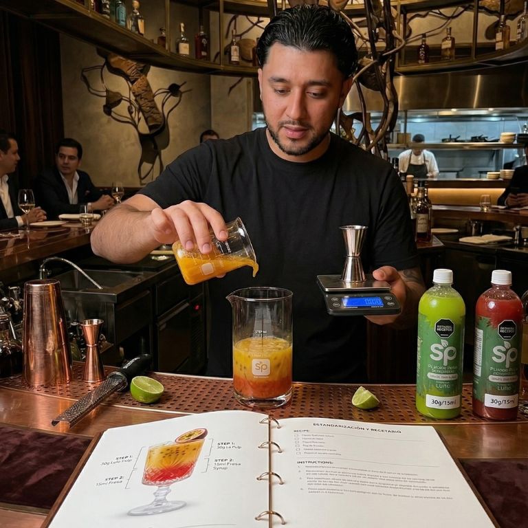 - Cucharas de bar y Licuadoras: Cómo lograr texturas sedosas que resalten la frescura de nuestras pulpas.